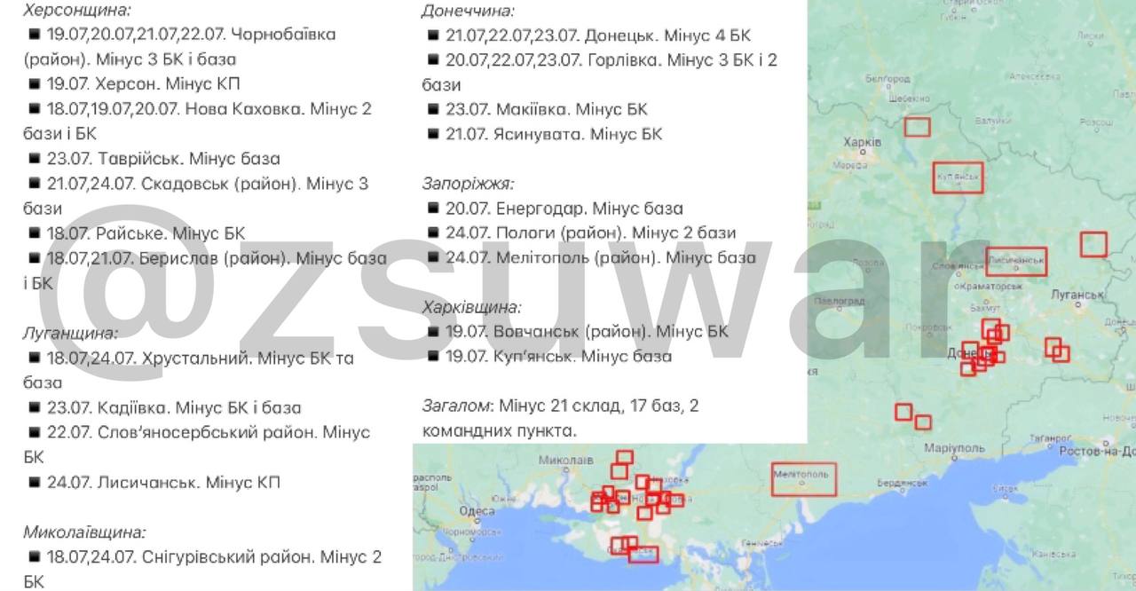Итоги недели - минус 21 склад БК, 17 баз, 2 командних пункта.