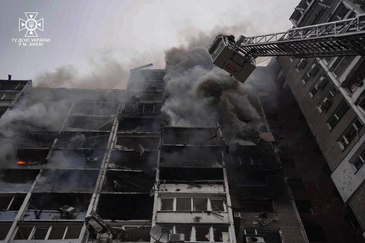 Киев и Харьков подверглись массированной ракетной аттаке. Как обычно цель - это куда попали. Например в жилую многоэтажку