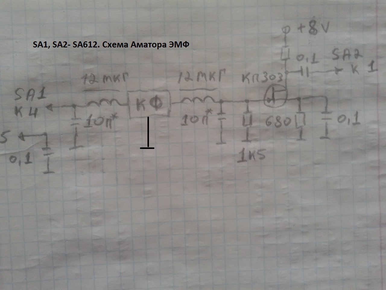 UR5FFR wrote: 17 Jan 2025, 18:33 Вот теперь АЧХ нормально выглядит. У вас фильтр 400ом. Выход SA612й имеет сопротивление 1,5кОм. Каскад на полевике имеет такое же сопротивление (см. резистор 1к5).