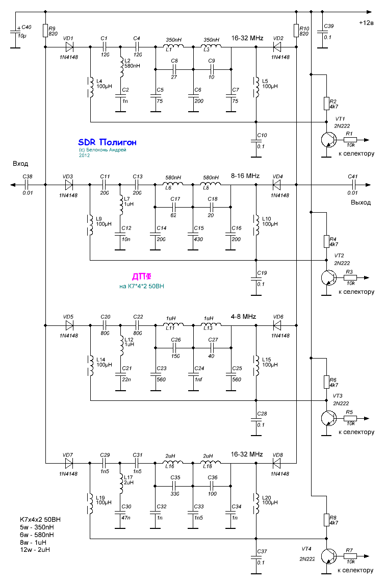ДПФ были расчитаны из условия максимального подавления паразитного канала приема на третьей гармонике гетеродина.
