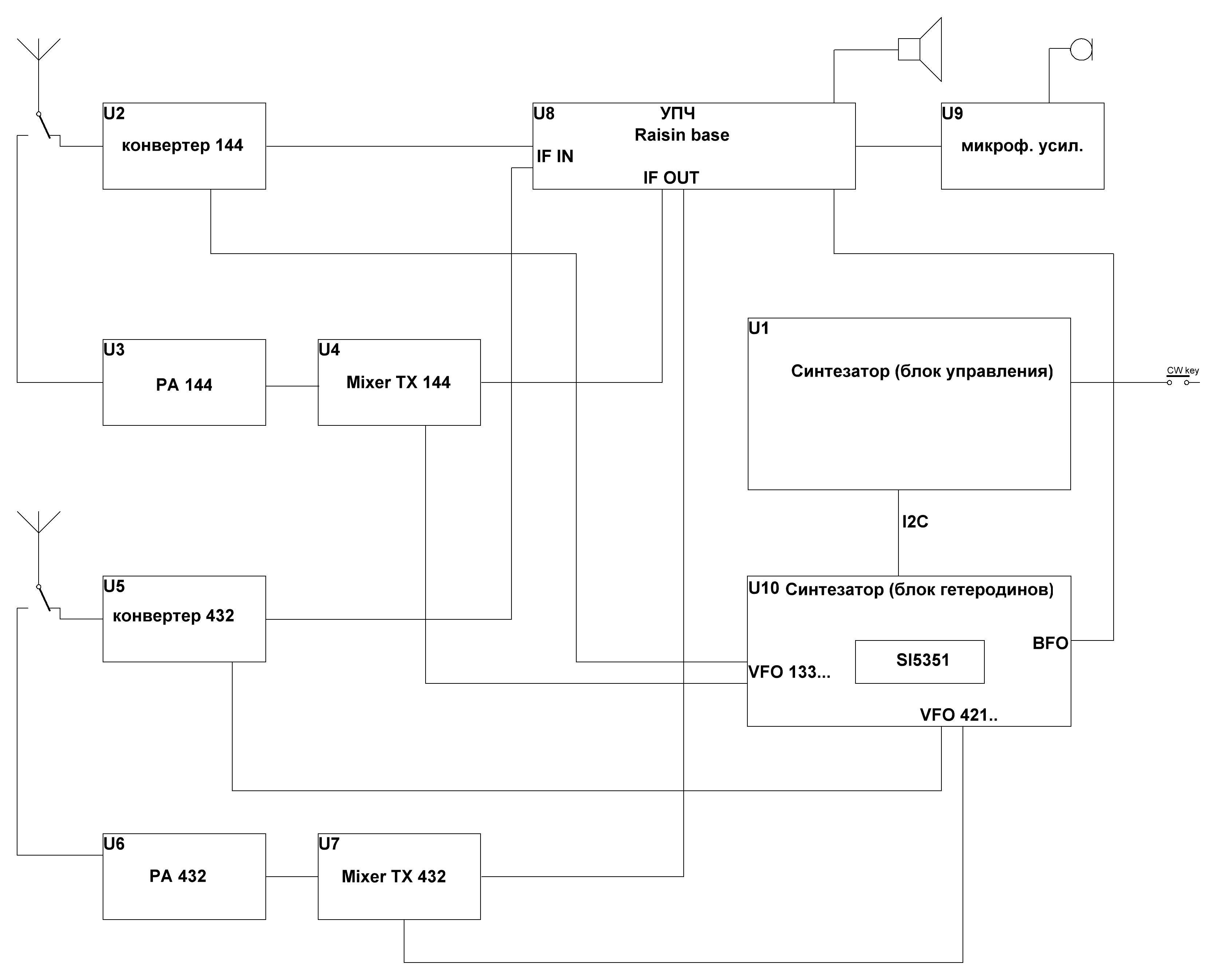Без кардинального изменения "УКВ узлов" трансивера никак не получается, т.к. "оригинальный вариант" у меня с раздельными трактами RX/TX..