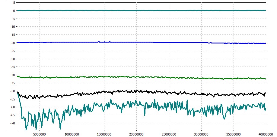 Не хуже -65дб имеет. Просто то что меньше -70дб отображается как -85дб.Gintoki wrote:Выходит, что фильтр за полосой имеет затухание -85дБ? Что-то я запутался...
