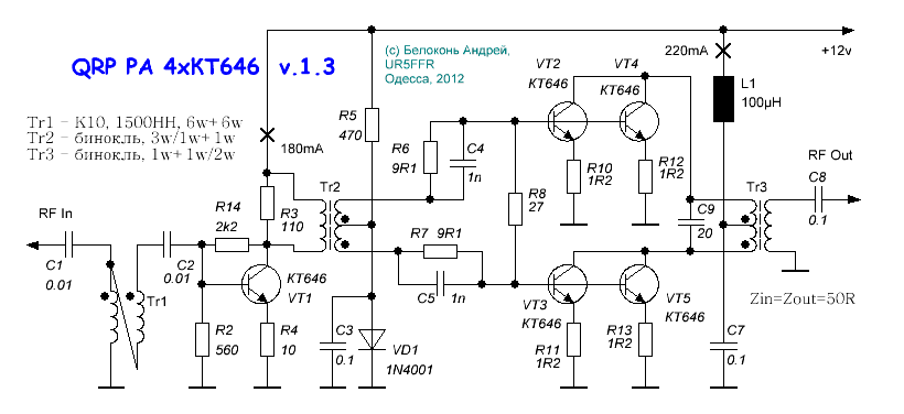 Re: QRP PA 4*КТ646, 12в, 4вт, 1..30MHz