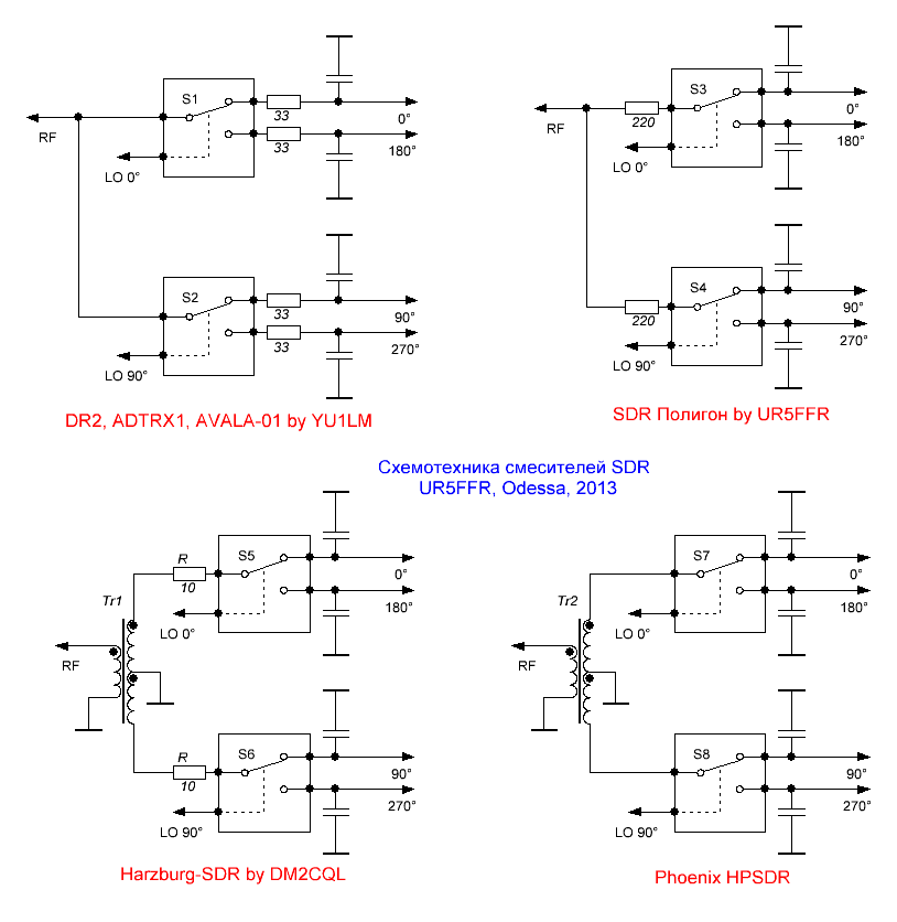 Давно хотел собрать воединно разные схемотехнические варианты смесителей SDR. Рассматриваются только смесители которые имеют симметричный выход, т.е. требуют использования инструментального усилителя.