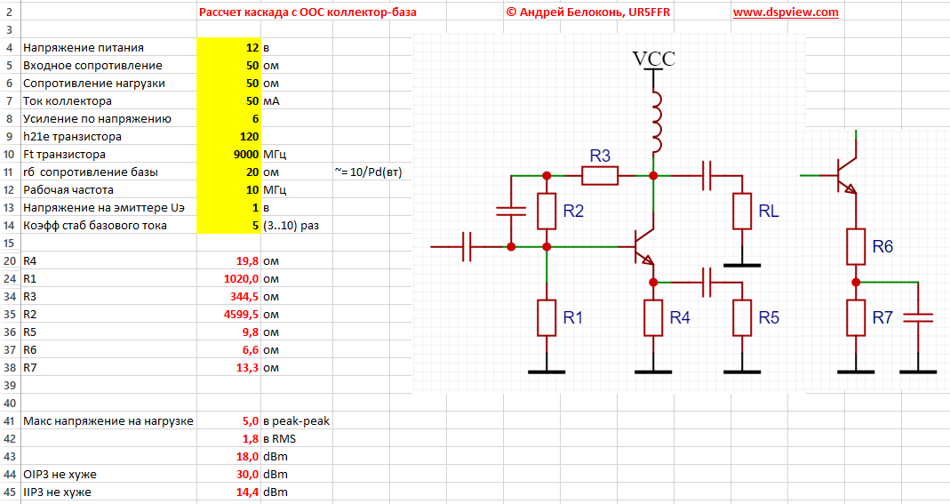 Небольшой калькулятор для рассчета номиналов каскада на биполярном транзисторе