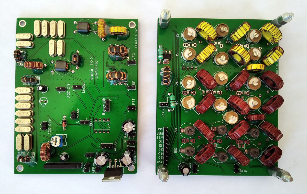 Специально для Raisin DX2 разработан комплект ДПФ на платах одинакового типоразмера - можно устанавливать "этажеркой". ДПФ рассчитаны на 9 диапазонов, коммутация электронная, есть аттенюатор и УВЧ.
