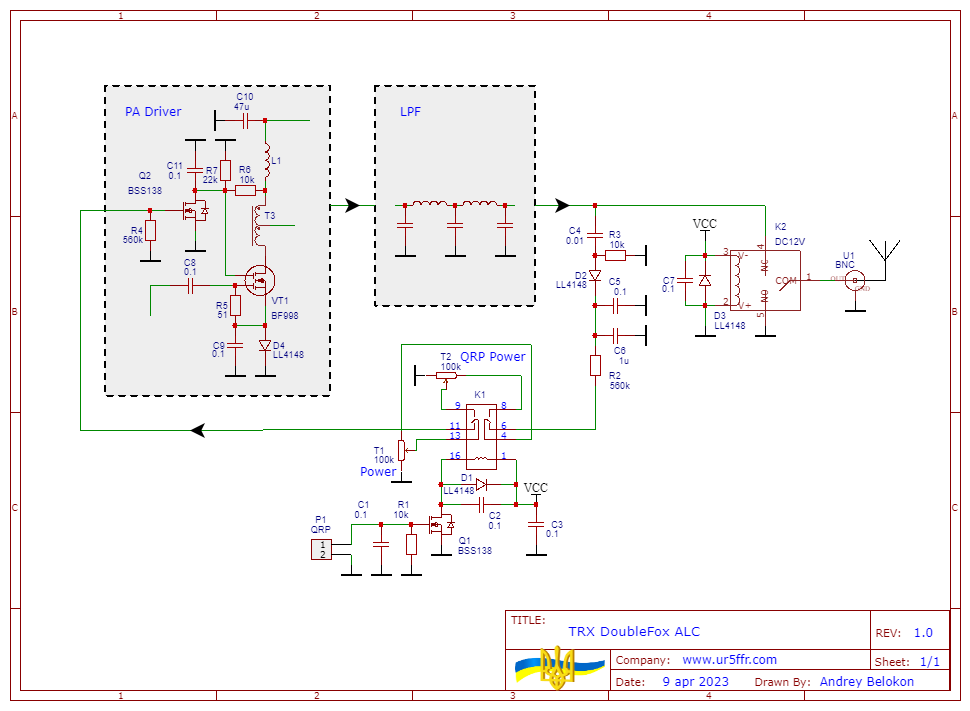 В трансивере DoubleFox совместно с этим усилителем была применена следующая схема ALC