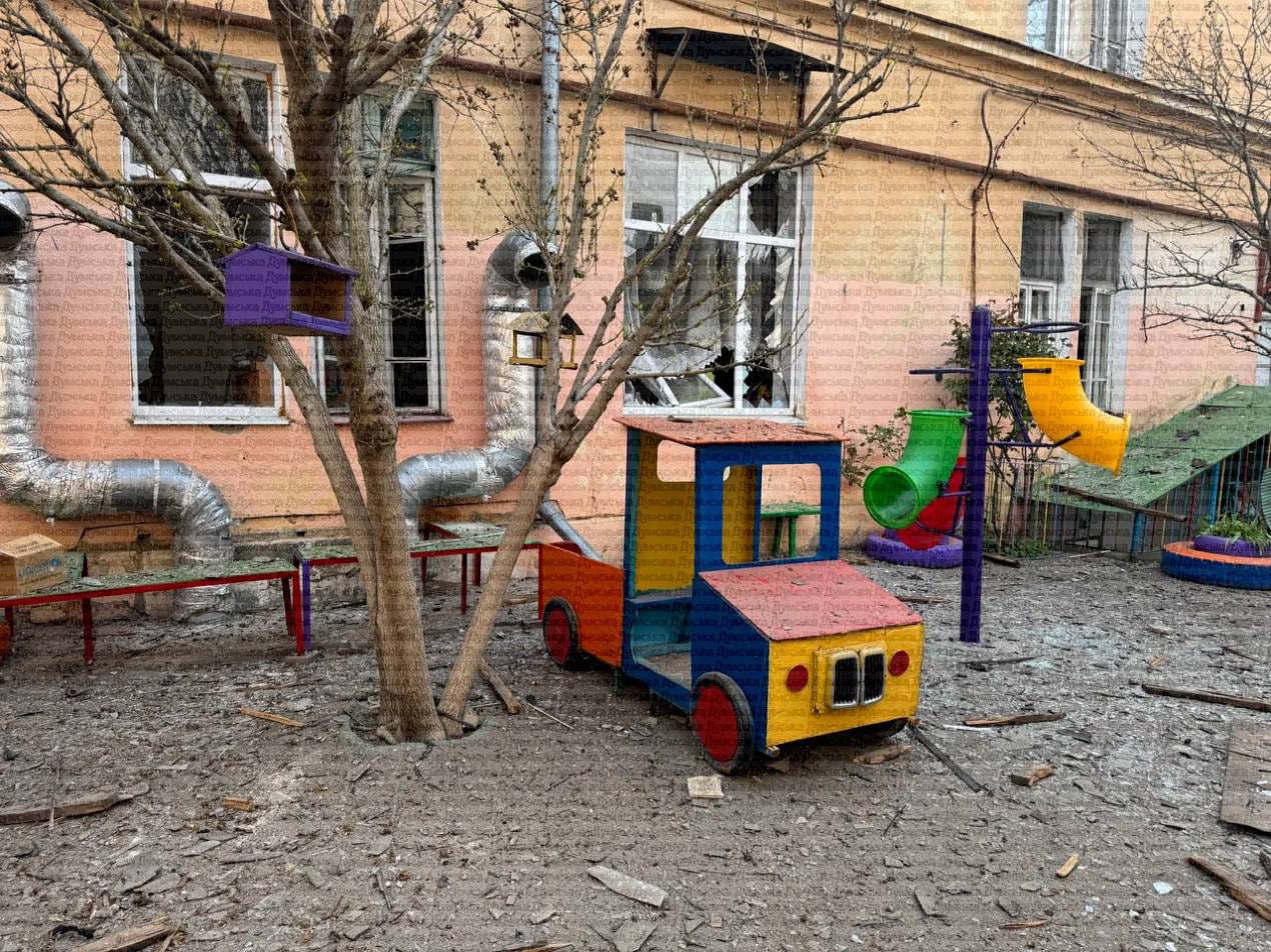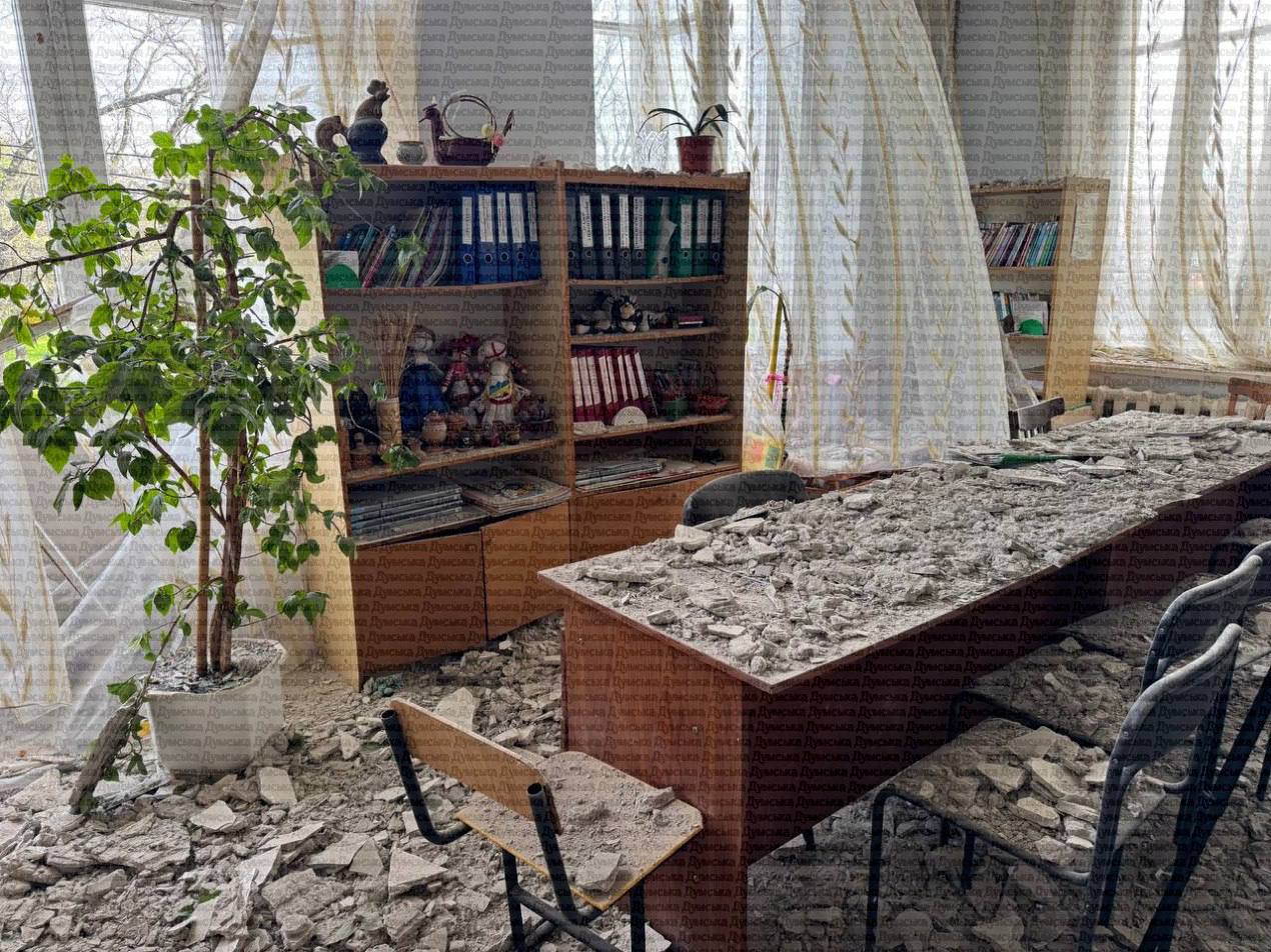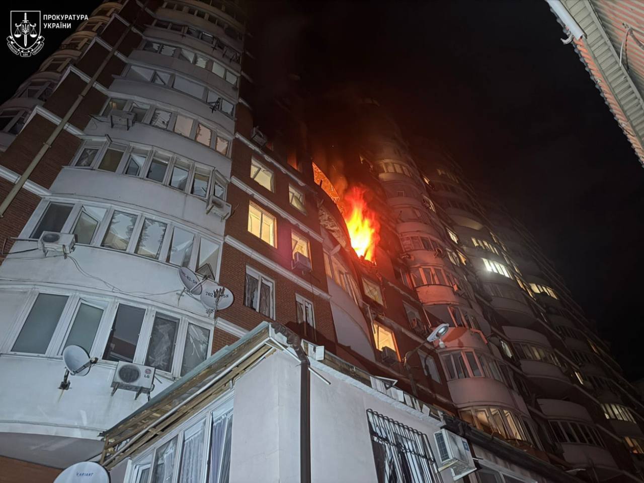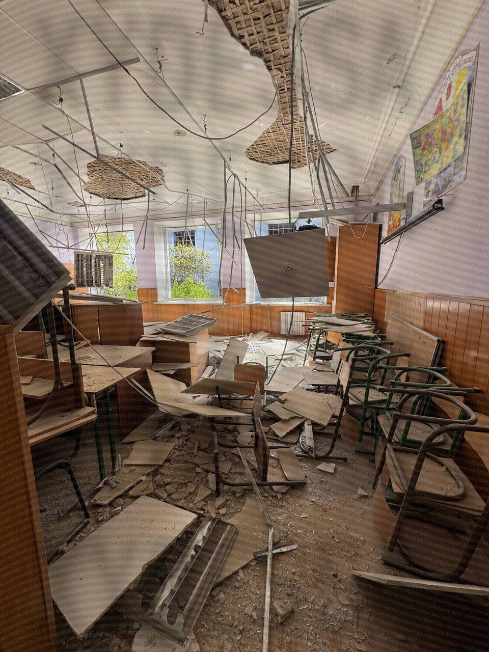 Очередной ночной налет рашистских террористов на город. Повреждены жилые дома, школа и детский садик