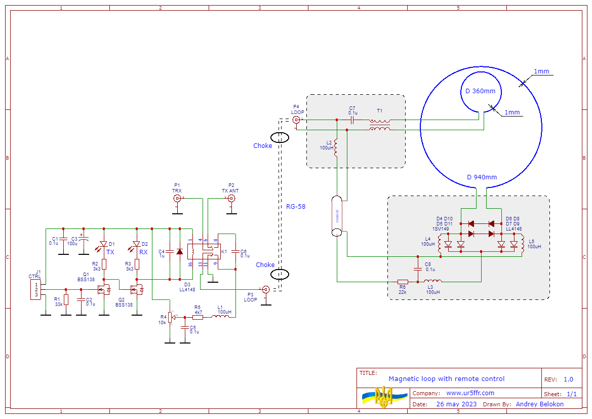 Блок управления получает сигнал TX с трансивера и подключает соответствующую антенну. Если трансивер выключен то подключается передающая антенна. При передаче с рамки снимается напряжение управления чтобы не убить варикапы.