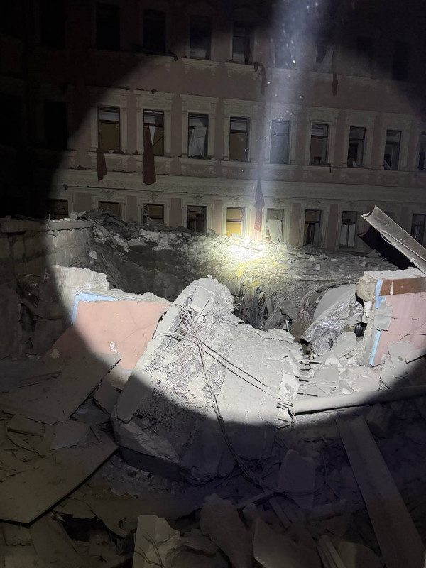 Это лицей в Белгород-Днестровском. Сегодя туда прилетела ракета от кацапских пидоров. Двое убитых, 12 раненых. Разбирают завалы. Русня - гной.