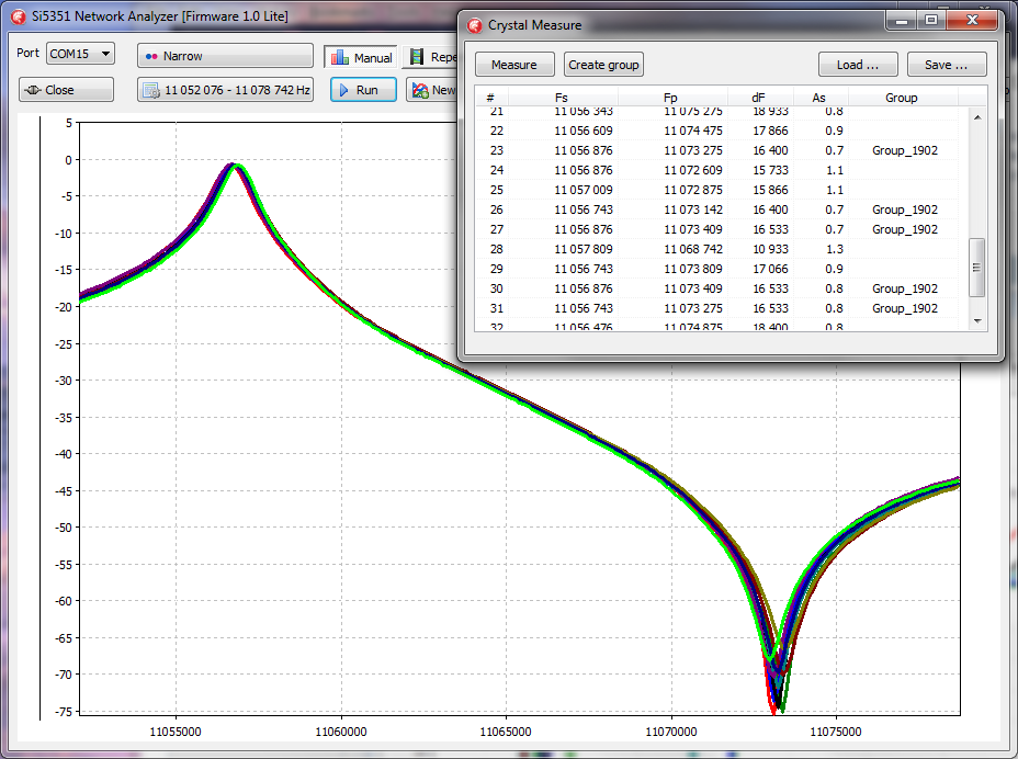 Давно хотел автоматизировать процесс отбора резонаторов для кварцевых фильтров. А тут еще и попались недорого старые карболитовые кварцы от РСИУ. Так что закатал рукава и за два вечера накодил апгрейд софта для своего анализатора.