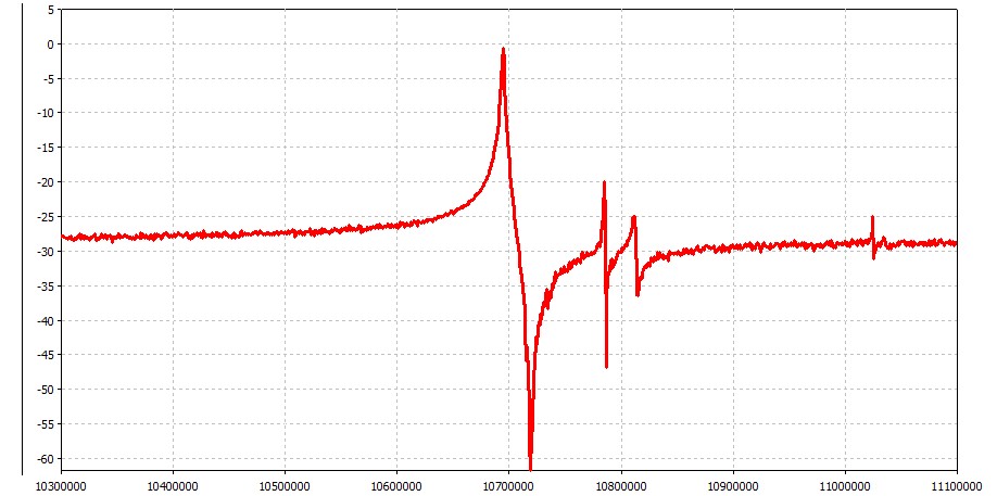 Конечно все эти упрощения имеют свою цену. Пришлось забыть про измерение на гармониках - частотный диапазон прибора "всеголишь" 100кГц..200МГц :) Динамический диапазон невысок из-за низкой разрядности АЦП - в диапазоне 1..30МГц он составляет порядка 60дб при шумовой дорожке -65..-60дб. При повышении частоты уровень шумовой дорожки повышается. Несмотря на столь "скромные" параметры по сравнению со старшими приборами линейки этого вполне достаточно для радиолюбительских примений.