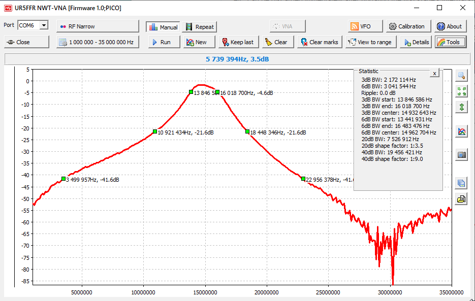 Пример измерения АЧХ ДПФ 20ти метрового диапазона