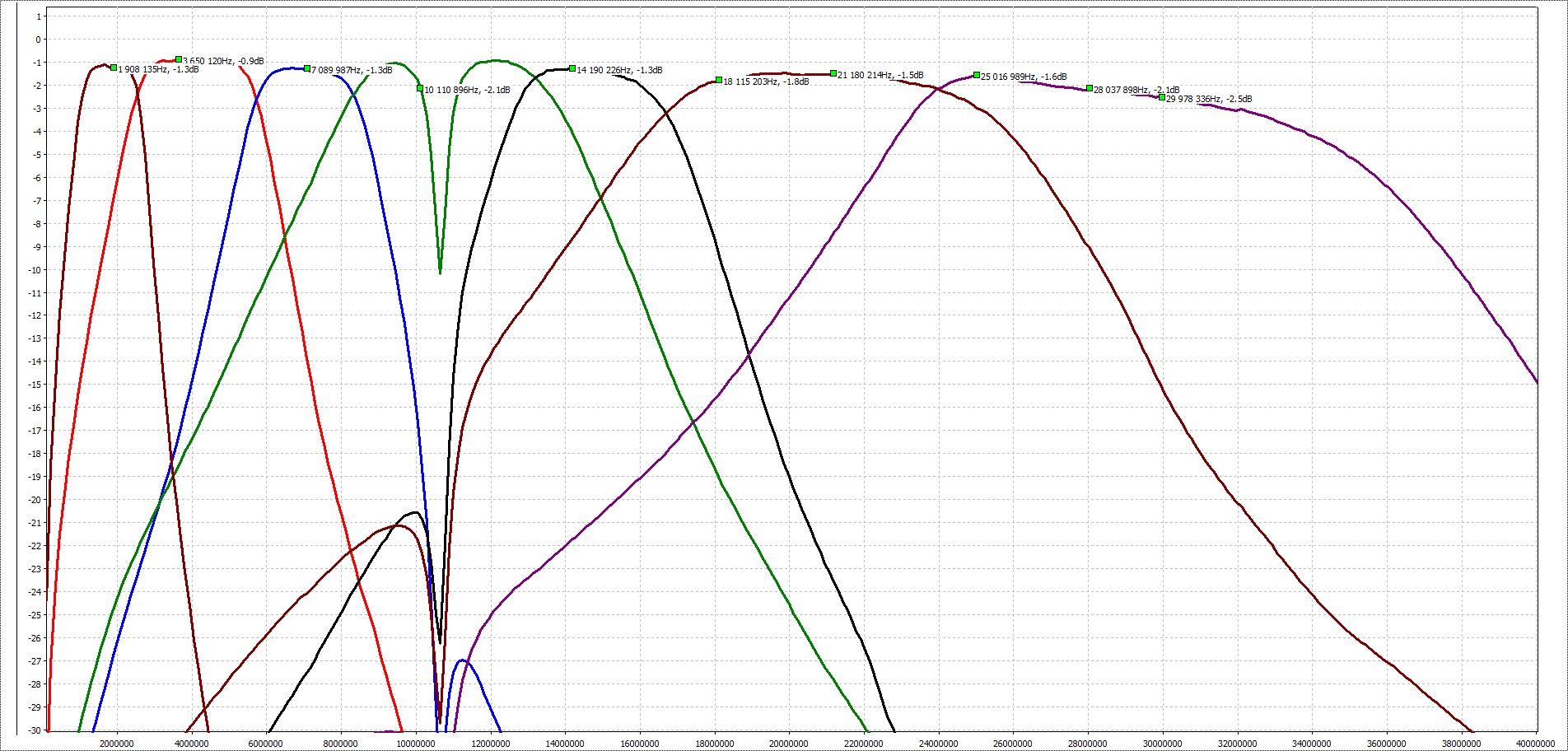 Широкая полоса пропускания фильтров позволила получить минимальные потери порядка 1дб.