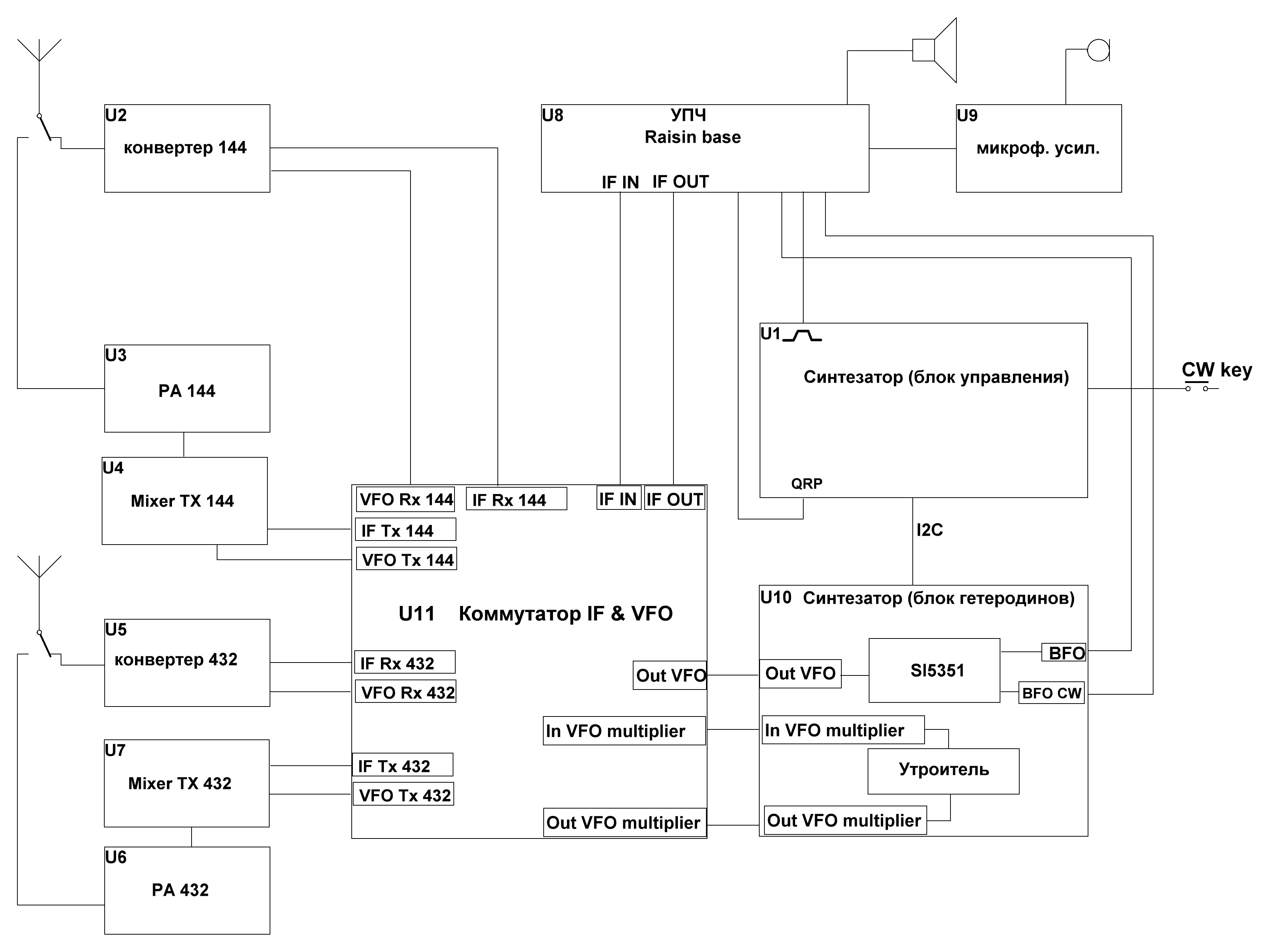 3. Каким образом реализовать переключение входа/выхода ПЧ между смесителями 144 и 432 МГц.?