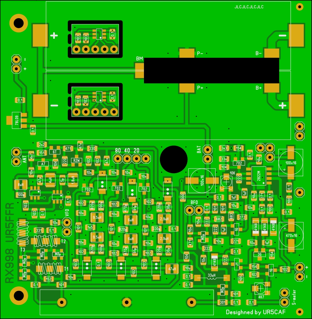 Зачарувала робота приймача, у корпусі D110A. Вирішив також повторити цю конструкцію. Вже придбав всі компоненти, корпус. На даний час в процесі розробки плати. Вирішив все вмістити на двох платах: основна плата, містить власне сам приймач за схемою 2.3, ДПФ, ПВЧ, і всі допрацювання UR3ILF, окремо плата синтезатора, також розробки UR3ILF, як я зрозумів. В контурах, після налаштування, будуть встановлені постійні конденсатори. Також на платі будуть встановлені акумулятори з контролером зарядки.
