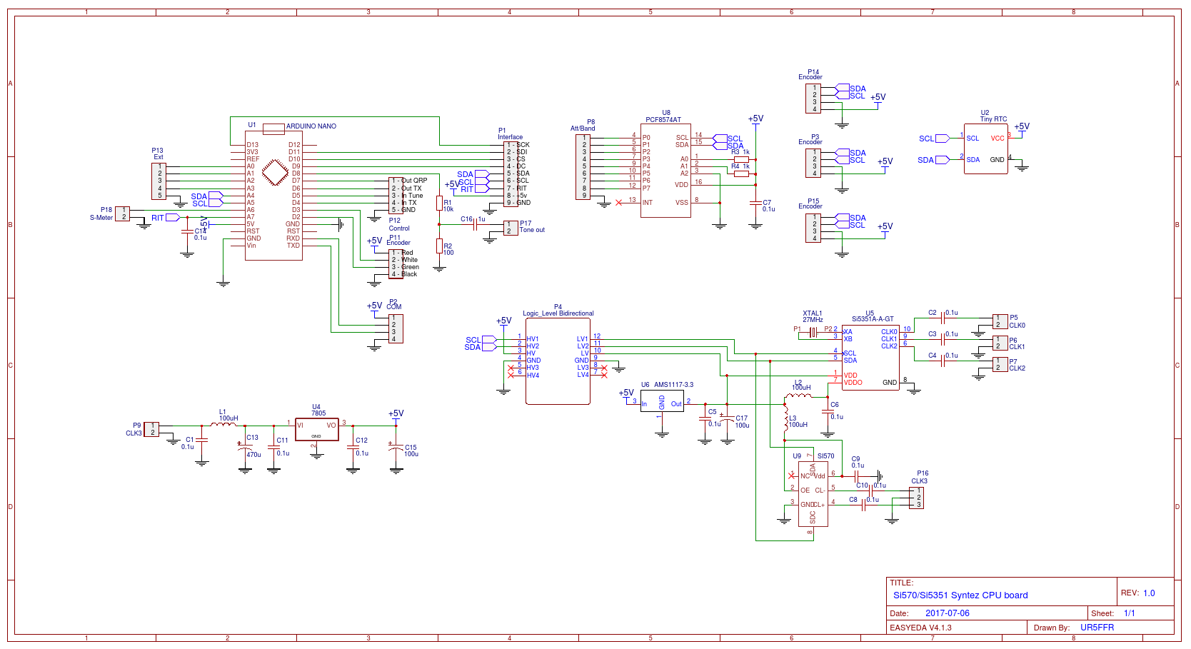 Так, например, на плате процессора установлен расширитель U8 PCF8574 для формирования сигналов управления ДПФ и аттенюатором/УВЧ. В зависимости от конструкции эту микросхему можно не устанавливать на плате процессора, а установить непосредственно во входном блоке ДПФ. Управление для нее берется с одного из разъемов расширения I2C. При этом в два раза сокращается количество проводов управления.