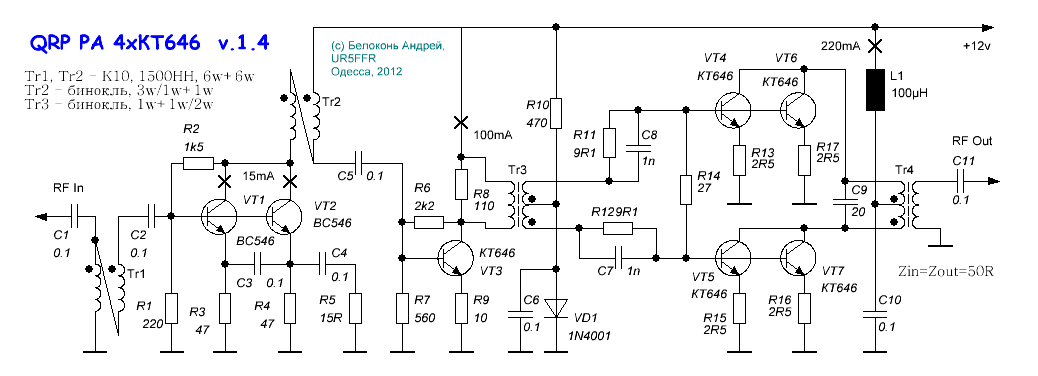 Re: QRP PA 4*КТ646/12в/1-2вт