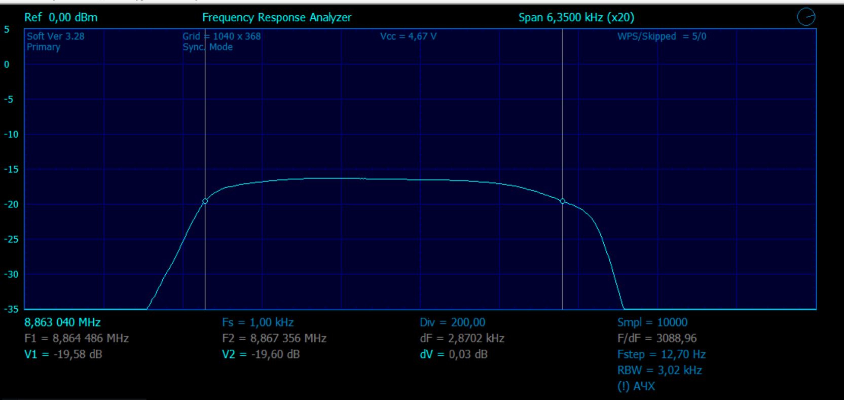 Вечером проведу тест ,у меня есть готовый 10ти кварцевый фильтр и попробую сравнить.выложу результаты.И есть еще вопрос .На "лодочках"40мгц вы не проблвали фильтр делать?