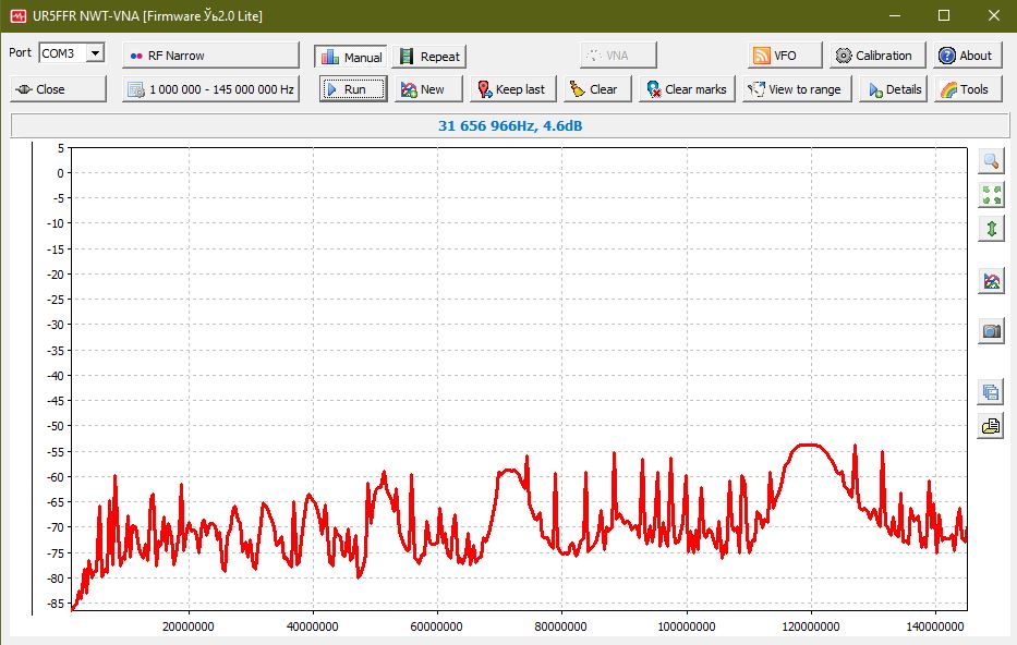 3. Дать команду 'j'. Дождаться пока прошивка найдет частоту ПЧ - будет столбик цифр частота/амплитуда. Закончится должно примерно так: "465500 4965". Если закончилось с амплитудой менее 4700-4800 это говорит о проблеме с прохождением сигнала. Проверьте кабель и наличие сигнала на выходе/входе