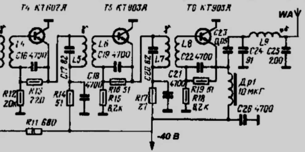 Как на ваш взгляд включены транзисторы во втором и третьем каскадах? Нет, не угадали :) Они включены с общей базой.