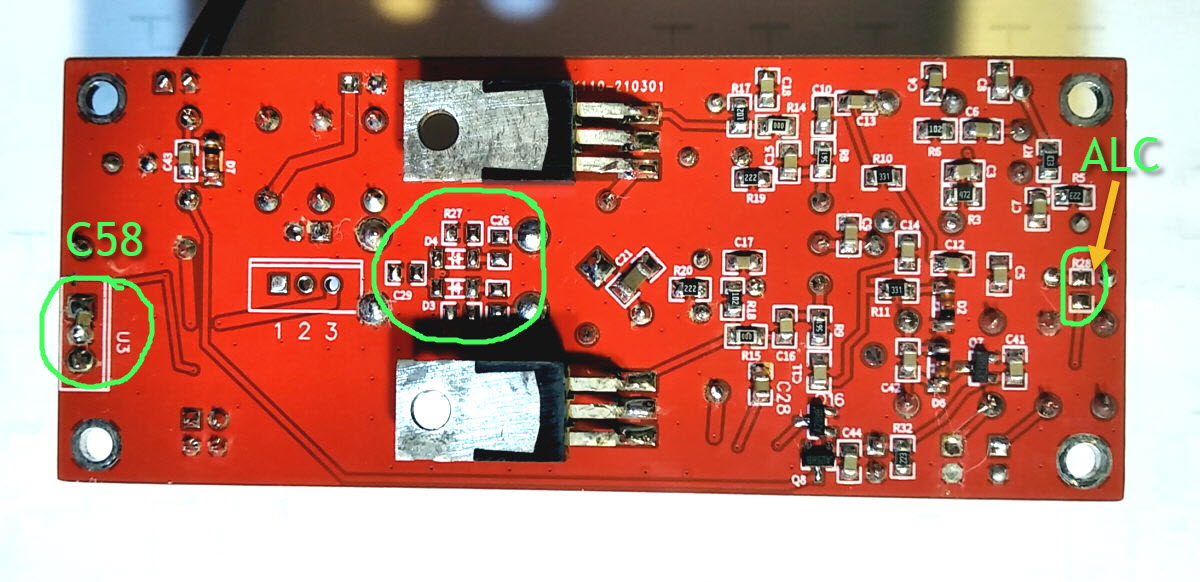 R28 справа не устанавливается. Верхняя контактная площадка - вход ALC по схеме.