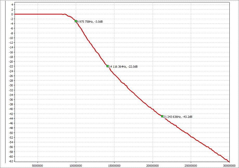 Вот например для частоты среза 10МГц по уровню 3дб получаем такой фильтр