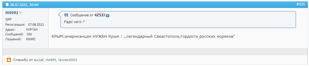 Кто-то еще думает что среди кацапских радиолюбителей есть адекватные люди?