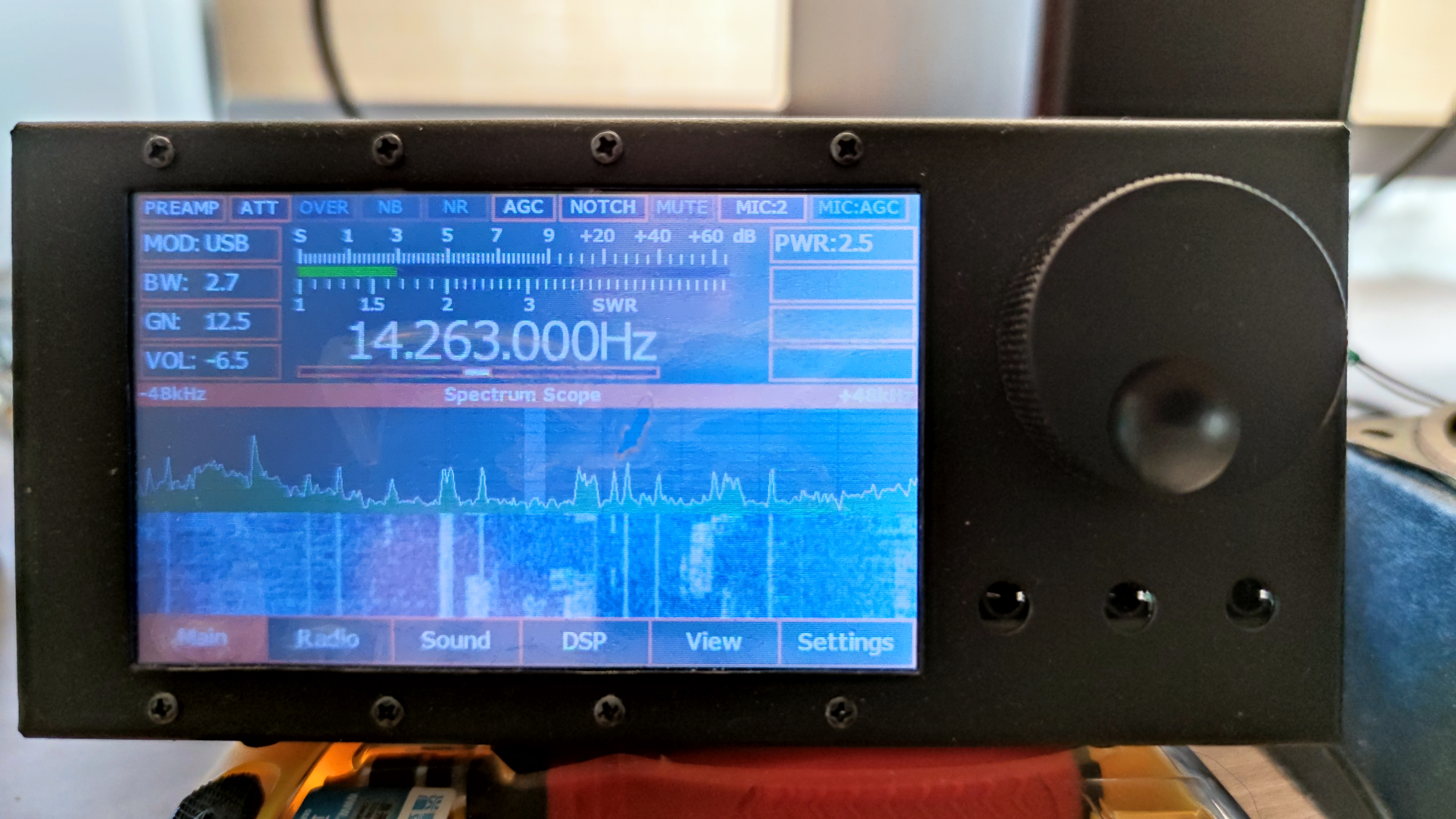 Сначала расскажу о проекте. Это трансивер построен по принципе DDC/DUC. В DDC/DUC используется FPGA 10CL025YE144, ADC LTC2208, DAC AD9744. Блок DSP построен на STM32H743II. Имеется LCD 4.3’’. Управлять трансивером можно с помощью энкодера и тачскрина. Пока что состоит из трех плат: плата DSP; радио юнит; плата LCD. Вся конструкция по задумке должна размещаться в металлическом корпусе 150x140x70. Ниже выкладываю несколько фото и схему DDC/DUC. Измерение характеристик не проводилось по этому пока не могу сказать ничего конкретного кроме того, что частота дискретизации 122.88 МГц и соответственно приемник може принимать до 60 МГц.