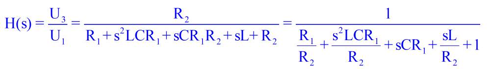 Передаточная функцию равна отношению напряжения на выходе к напряжению на входе схемы