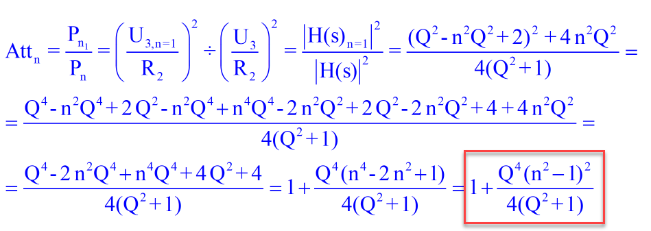 Подставляем и выражаем передаточную функцию через добротность Q и номер гармоники n