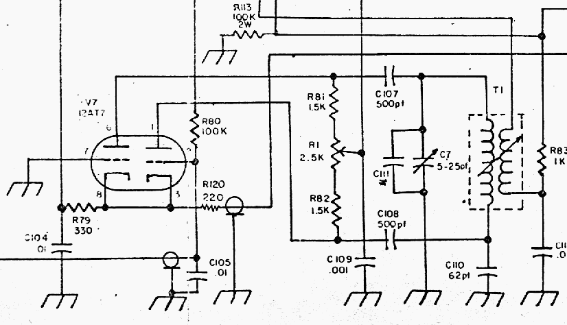 Схема на первый взгляд выглядит несколько странно. Правый триод выглядит "лишним" - вроде как он ничего не делат. А вот нет - если его исключить то мы получим обычный смеситель на одном триоде с подачей гетеродина в катод. Его усиление порядка -3дб - я это проверял экспериметально. То есть триод что-то все же делает.
